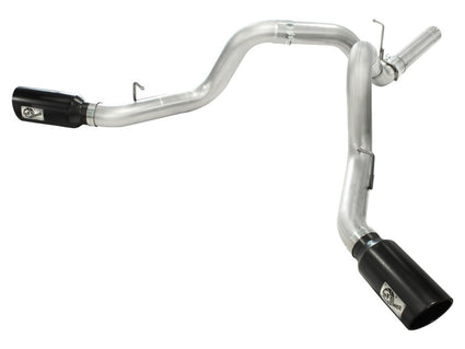 aFe MACHForce XP Exhaust Aluminized Dual Split DPF Back 11-15 GM Diesel Truck V8-6.6L (td) (BLK tip) - afe49-04043-B